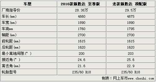 在车身尺寸方面,2010款新胜达在车长和车高方面要逊于老款车型,但是这两款车的轴距均为2700mm,因此在车内腿部空间方面,新老款车型不会有明显差距。在通过性能方面,老款车型的接近角、离去角和最小离地间隙等数据都要优于新款车型,这说明2010款新胜达的通过性有所降低。