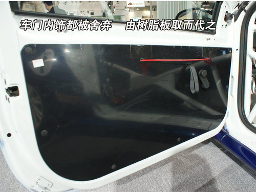 车门外部的变化显然不如内部,打开车门后几乎无法见到任何你所熟悉的装饰。一张简单的树脂板就是全部的车门内饰。在上面仅提供了开关车门用的拉绳及手摇玻璃把手,电动升降机构因重量因素也一并被摒弃。
