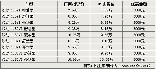 销售人员表示,现在店内的欢动车型较齐全,全系车型均可享受6000元的现金优惠,同时还有1000元至2000元的大礼包赠送,同样超值,但不可折换现金。