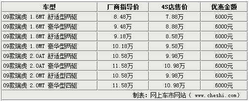 据奇瑞汽车4S店销售人员介绍,瑞虎3目前现车齐全,除四驱车型只接受预订,大概两周以后可以提到现车外,2.0L自动挡车型以及1.6L和1.8L车型的现车比较齐全,目前全系车型都可以优惠6000元,欢迎消费者到店赏车试驾。