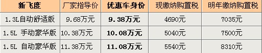 编辑点评:飞度作为一款在国内汽车市场很成熟的经济型小车,从路面上的保留量就能看出大家对它的认可度。正因如此,飞度的保值率很高。二手车的保值也导致了新车价格的坚挺,同时受购置税消息的影响,飞度的成交量也在不断扩大,目前商家对它的优惠幅度一直停留在3000元左右。