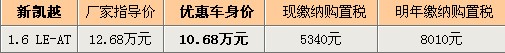编辑点评:在国内10万元级别车型里,新凯越一直是这个价位的领军车型。事实证明它的销量自然不必多说,但这与新凯越不断的价格促销也有着密不可分的关系。1.6L车型高达两万元的让利更是在同级别车里首屈一指,性价比非常不错。这使得年后购置税增加两千余元显得不再那么重要。