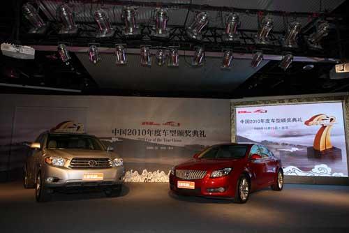 中新网12月17日电 历时三个月的中国2010年度车型评选终于华彩落幕。日前,汽车族杂志社在北京举办了隆重的颁奖典礼,介绍了中国2010年度车型的评选过程,揭晓了获奖的车型。上海通用别克新君威和广汽丰田汉兰达分别捧走“中国2010年度车型”和“中国2010年度SUV”的“奥斯卡”奖杯。