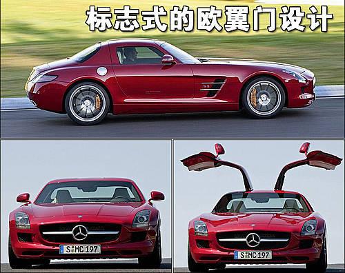 2010款奔驰SLS AMG的设计灵感来自于300SL鸥翼跑车,进气格栅则传承了以往的风格,全车在线条上更加流畅,尾部添加了尾翼。2010款奔驰SLS AMG搭载了AMG惯用的6.3L V8引擎,匹配七档双离合器式变速器,最大功率输出达到了420千瓦,峰值扭矩输出为650Nm,采用后轮驱动。这款车的重量大约在3,500磅左右,这使得SLS可以在3.7秒内从0加速到96.6km/h,最高时速可以达到320km/h。另外选配的陶瓷碳纤维制动系统可以为它带来强劲的制动能力。