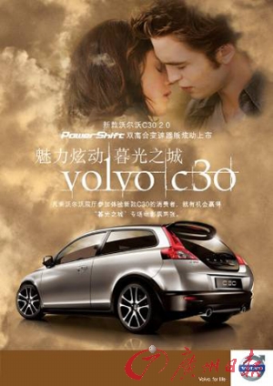 毫无疑问,这是最新出炉的汽车与电影组合。在这部小投入却大产出的电影中,VOLVO C30时尚、精致的造型和男女主角年轻俊美的外形搭配相得益彰,再加上雨意蒙蒙的画面,让人体验到完美的青春偶像作品应该如何书写。在这部影片中,最迷人的地方不是吸血鬼的神秘世界,也不是结尾时那场惊心动魄的吸血鬼大战,而是看着神秘而迷人的男主人公爱德华开着精灵般的沃尔沃C30在雨雾中大秀车技。