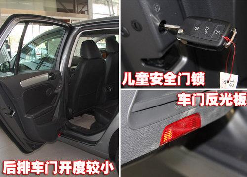 高尔夫1.4TSI自动挡豪华型的后门开启角度略小,但不影响上下车。高尔夫6后门还配备了儿童安全门锁,提升了安全性,并且采用与前门相同的反光板设计。