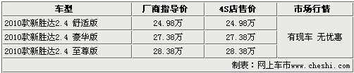 现代2010款新胜达的前进气格栅变得更加前卫,尾部的排气管也由原来的圆形变为更现代的方形。在动力方面,2010款新胜达采用了2.4L发动机和6速手自一体变速器,而且车型也增加到了3款,为消费者提供了更多的选择空间。据4S店销售人员介绍:目前新款2.4L新胜达已有现车销售,但车型样色不全,而预订这款车的消费者最快本月底便可以到车。同时2.7L老款车型还有黑色和白色现车供应,现金可优惠2万元。