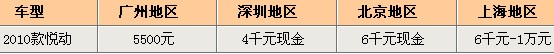 2010款悦动于广州车展正式上市,改款重点是发动机,2010款悦动将换装1.6L GAMMA发动机。 和老款悦动相比,2010款悦动搭载了与i30相同的现代最新技术的1.6γ(Gamma)节能环保发动机,在动力性、油耗、噪音方面都有较大改善。但是在价格方面2010款悦动继续延续了老款悦动。