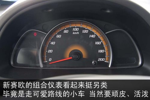 新赛欧的组合仪表看起来挺另类,毕竟是一款走可爱路线的小车,当然要表现出顽皮、活泼的一面。