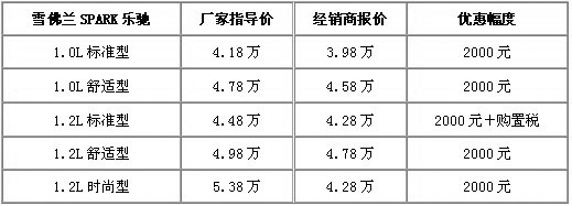 近日,车天下编辑从云南中机汽车贸易有限公司获悉,上汽通用五菱乐驰全系可优惠2000元,其中1.2L标准还可获得全车购置税赠送。具体车型及详细优惠政策,如下表: