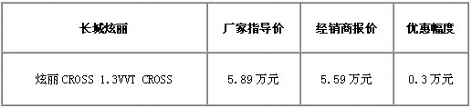 长城炫丽1.3CROSS直降3000元 小车也拓界
