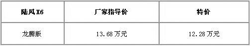 陆风X6龙腾版特价仅12.28万元 健中冈巨献