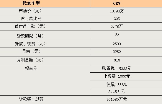 汉兰达、RAV4的相继诞生打破了CRV加价提车的神话,终于这款车在一些城市地区出现了一些优惠,恐怕这是很多消费者所期待的吧,CRV的贷款方案详情也可以看下表。