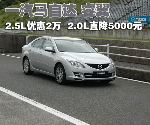 据一汽马自达4S店销售人员介绍,马自达6睿翼目前全系车型最高可以优惠现金2万元,2.5排量三款车优惠后最低仅售19.68万,其中2.0排量车型目前也可以优惠现金5千元。本月底经销店内有黑色、银色、紫色等现车供应。