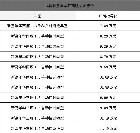 2009年3月6日,长安福特正式宣布,福特新嘉年华正式在国内上市,先期上市的两厢和三厢共11款车型价格从7.89-11.19万元,从即日起,消费者就可以到长安福特授权福特品牌经销商处预订新嘉年华。