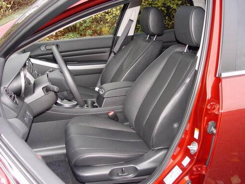 正如前述所提及的那样,CX-7的内饰有了很大提升,采用了新的仪表板和座椅材质,扶手上的护垫更软,仪表采用黑色或金属质感装饰,新的方向盘增加了包括蓝牙电话在内的控制键,仪表板旁边中控台顶部的3.5英寸信息显示屏是标配,可以显示暖风和收音机信息。同时驾驶员座椅配备了新的三点记忆功能,前排乘客座椅增加了倾角电动可调功能。