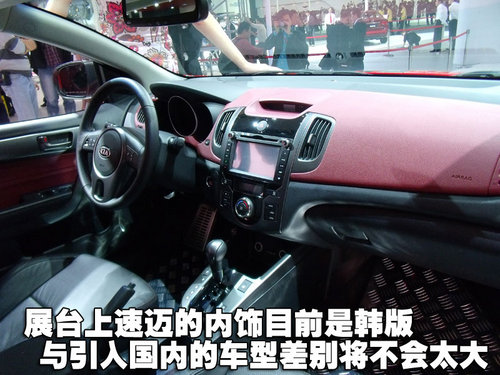 起亚速迈搭配使用在Forte上的两套动力系统,2.0L发动机配备5速手动和4速自动变速箱,2.4L发动机配备6速手动变速箱和5速自动变速箱。而匹配2.0L发动机的车型最有可能被引入国内销售。