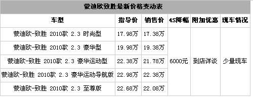 日前,从长安福特4S店了解到,目前2010款蒙迪欧-致胜少量现车到店,其中2.3豪华型有黑色现车供应,店员表示目前购车至少有6千左右的优惠幅度,相对于老款1万元左右的现金优惠显得诚意不足。
