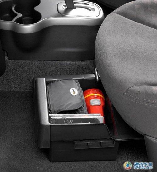 而在按键的设计上,这款小车也下了不少功夫,基本上所有的功能按键或者旋钮都非常简单实用,没有任何需要你查看说明书才能领悟的地方,清楚易用应该是对女性消费者最好的设计了,毕竟对于繁琐的技术与机械,她们可没有什么兴趣。另外众多的储物空间也可以满足女性最复杂的需求,单是在转向盘位置上就有可以拉开的小抽屉,背后的一大一小两个储物槽,还有副驾驶座椅下面可以拉出放鞋的小抽屉都将这辆小车变身成为了女士的百宝囊。