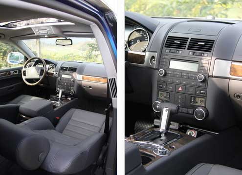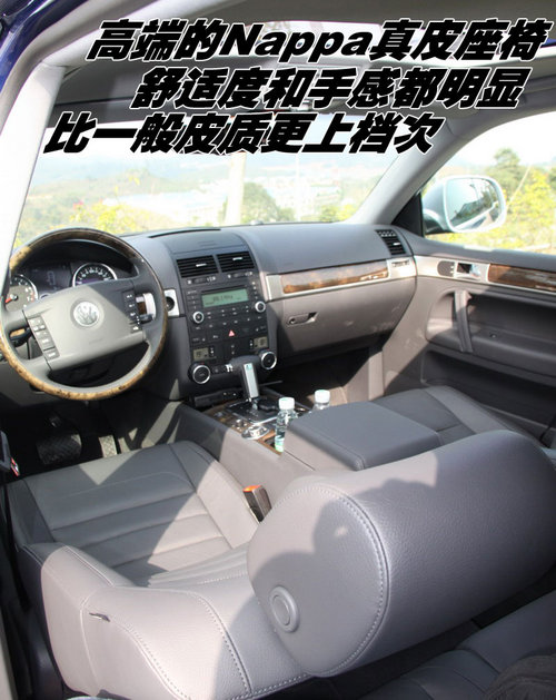 在大众汽车的选装方案中,高端的Nappa真皮座椅可不是轻易就会被得到的。而此次限量版途锐就在全车座椅上都装上了双色拼接的Nappa真皮座椅,其舒适度和手感都明显比一般皮质座椅更上一个档次。当然,令人遗憾的是,低配车型的座椅功能和不到16万元的大众国产高尔夫6代没有什么区别。