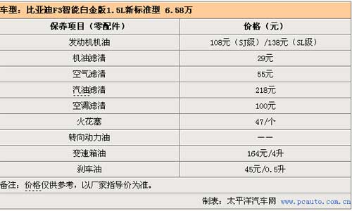不到6万的价位,可以买一款像比亚迪F3这样空间不错的紧凑车型,这便是F3销量一直高居不下的原因。不仅售价便宜,F3的保养费用也相当的实惠。小保养在160元,而在3万公里的大保养也仅仅是405元。比亚迪厂家对F3提供2年或6万公里的质保期(以先到为准),保养间隔是每5000公里进行一次,在3000公里时4S店有对车辆进行免费检查。
