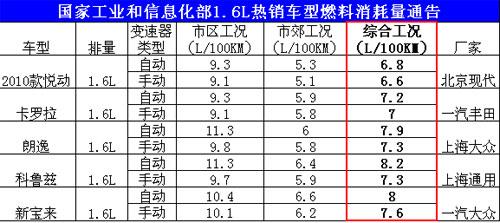 中新网1月28日电 国家工业和信息化部近日公布各品牌汽车油耗通告,北京现代2010款悦动1.6L 手动档和自动档百公里综合工况油耗为6.6L~6.8L,与卡罗拉、朗逸、科鲁兹、新宝来等1.6L热销车型相比,百公里综合工况油耗堪称同级别最低。