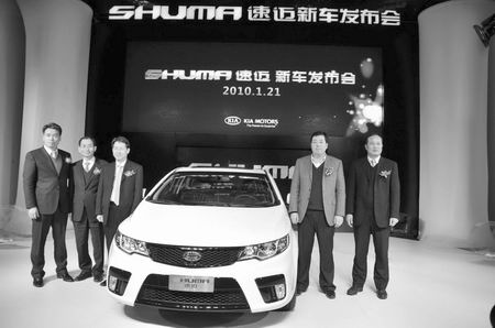 1月21日,在风景秀丽的上海佘山,进口起亚首款双门轿跑车SHUMA(速迈)在众人的期待中正式上市。此次,起亚汽车(中国)共推出1.6L和2.0L两款CVVT技术发动机的车型,色彩多达9种,价格在16.98万元~19.88万元。作为起亚汽车(中国)力推的一款双门跑车,SHUMA(速迈)的问世标志着起亚汽车进军中国跑车市场的巨大决心。跑车之所以成为年轻人追逐的对象,时尚外观和拉风造型起着非同寻常的作用。从外观来看,SHUMA(速迈)最明显的特征就是秉承起亚的家族基因--虎啸式前脸:它采用了蜂窝状黑色格栅,上下进气格栅的面积都有所扩大,前雾灯采用了运动车型特有的包围设计,搭配17英寸铝合金轮毂、红色的车身和别致的黑色外后视镜,运动气息十足。SHUMA(速迈)在内部空间设计和动力配置上也非常成熟。其长宽高分别为4480mm×1765mm×1400mm,轴距更达到2650mm。