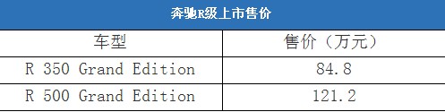 自进入中国市场以来,R级以其兼具多功能性与运动性的表现博得消费者的青睐,R 350 Grand Edition和R 500 Grand Edition将丰富R级的产品线,以个性运动的外观内饰,吸引更多个性客户的青睐。