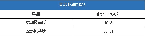售49.8-53.01万 英菲尼迪EX25中国上市