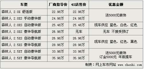 在12月份斯巴鲁曾推出了购车送装饰的活动,目前此项活动还在继续中,消费者购买巴鲁森林人店内可赠送价值5000元的装饰,其中包括了倒车雷达,尾喉,脚垫,灭火器和2年道路救援卡等等,车价方面仍没有优惠幅度。现车方面,2.0豪华版,2.5豪华版有蓝色、灰色、黑色、银色等现车供应,年前购车选择的空间很大。如果消费者买导航版车型,销售人员建议另外加导航。