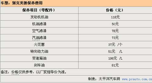 保养方面,上海通用为英朗提供了2年5万公里的保修期,车辆每5000公里保养一次,在费用方面,由于别克官方还没有对英朗价格作出公布,所以我们以科鲁兹的保养费用来给英朗做一个估算,大概做一次小保养大概需要300元,在6万公里需要进行一次大保养需要接近1000元,总的来算一年车主在保养方面需要花费1300元。