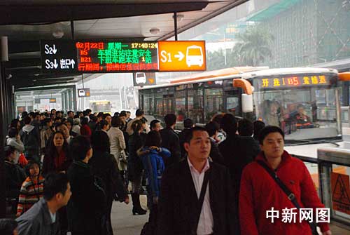 中新网广州2月22日电 (吴敏平 谢平江 程景伟)广州BRT(快速公交)自本月20日正式营运以来一直问题不断,今天BRT终于迎来节后第一个星期一的“大考”。今天下午,记者与乘客一同搭乘BRT,体验这个一直备受争议的交通新工程能否顺利通行。