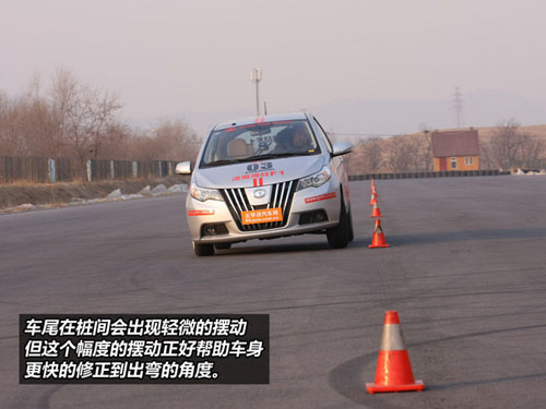 穿桩测试环节,凌傲的转向非常准确,四轮四角的设计让它在桩间显得异常灵活。由于这款车 不带ESP功能,所以车尾在桩间会出现轻微的摆动,但这个幅度的摆动正好帮助车身更快的修正到出弯的角度。可以说,凌傲在装桶间具有较高的驾驶乐趣。