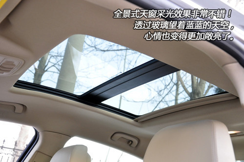 新君越的全景天窗采光效果非常不错,在不经意间已经告示天下,全景天窗再不是只在那些豪华车上才配备的稀罕物件,中高级轿车同样可以拥有这样的高端配置,国内传统的中高级车型市场格局由此被打破。