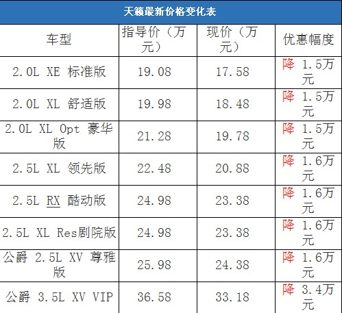 天籁:坚守商务车巨头阵线,最高降3.4万