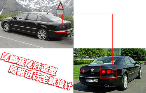 大众新辉腾不仅侧面线条没有明显的改变,而且尾部变化也并不大。尾灯的样式会在细节上进行针对性的修饰,仍将采用节能的LED光源,轴距以及基本尺寸方面没有显著变化。