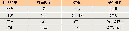 未来这仅仅一周的时间包括22日刚上市的风云2两厢,一周之内将有十三款新车隆重登场,这其中有小改款车例如2010款骊威,海马汽车2010款(海福星、福美来、欢动、普力马)全系列,另外还有国产途观在内的众生一直苦等的新车,这些车目前都陆陆续续出现在各大媒体的镜头下笔下,全国各地的4S店内也陆陆续续有了他们的身影,但是恐怕大家最关心的还是这些新车现在是否接受预订,订金是多少什么时候能提车,编者特在十三款车中挑选了四款新车并在北京广州上海深圳四个主要地区调查了一下他们的提车情况,希望能给想购买这些新车的朋友一些帮助,详情还可咨询当地的经销商。