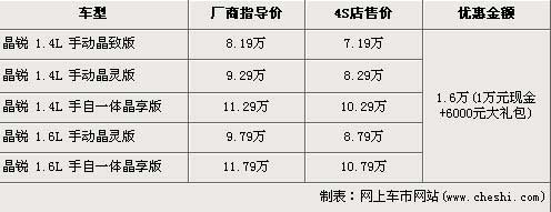 据北京斯柯达经销店销售人员介绍,由于3月8日妇女节的将要来临,店内对晶锐车型的优惠政策进行了加大。全系车型均有1.6万元的优惠,其中包括了1万元的现金优惠以及价值6000元的大礼包。店内晶锐全系有现车。