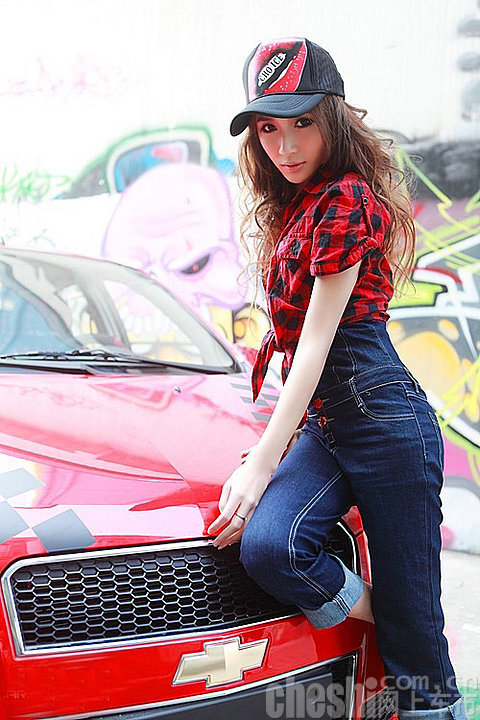 长腿雪佛兰车模 与红色乐骋亲密接触