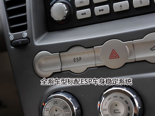 ESP电子稳定控制系统属于主动安全的一种,其实就是牵引力控制系统的升级版本,牵引力控制系统只对驱动轮的动力输出进行控制,而电子稳定控制系统则会对四个轮子的都进行控制。通过对四个车轮进行必要的制动来达到稳定车身的目的。奇瑞A3在安全配置方面还是很厚道的,全系车型标配了ESP。