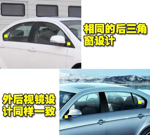 在侧面细节上,CH041与朗逸的前后窗的设计也是相同的,尤其是后三角窗的设计,都是采用神似宝马的回折线设计,外后视镜的在位置和设计上也是相似的,并且都是目前比较主流的集成转向灯设计。