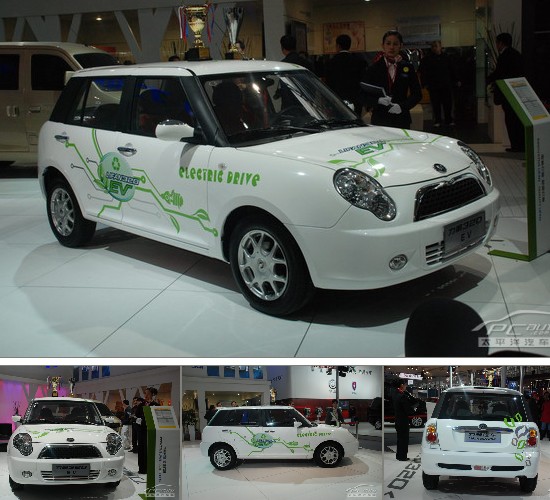 力帆320最大的特色就是“借鉴并融入”了经典车型mini cooper的设计元素,也因此而扬名。也许造传统汽车,民营企业难免走模范之路;但是在打造新能源汽车方面,力帆可是用尽心思,经过努力,终于与中国科学院携手开展新能源电动车项目。2010年3月16日,双方合作成立的上海中科力帆电动汽车有限公司正式挂牌。说回力帆320EV这款车,早就在国内亮相了。看下图。