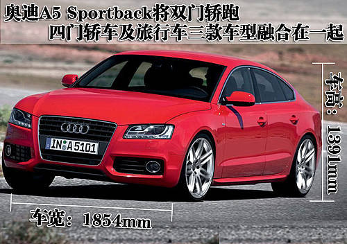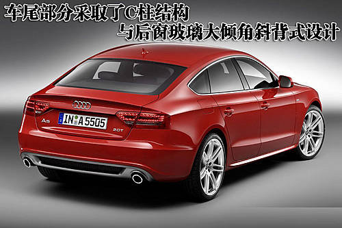 奥迪A5 Sportback四门轿跑车除加长轴距以外,依然延续奥迪A5双门轿跑版的大部分车身结构。不过在车尾部分采取了对C柱结构与后窗玻璃改动最小的大倾角斜背式设计,增加了实用性。