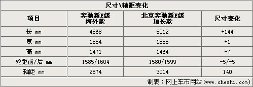国产新一代E级加长版车型相比目前国内销售的原装进口车款在长度上也有明显变化,整车长度从4.868米增加到5.012米、车身宽度略增1mm高度减少了7mm前后轮距也分别减少了5mm。前后轴距加长了140mm整。如果您对目前销售的进口原装奔驰E级轿车轴距不太满意,那么不妨期待一下北京奔驰国产化的新E级加长版车型。