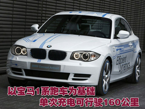 与MINI E电动车型一样,宝马Concept ActiveE的单次充电里程可达160公里,此外该车还配置了动能回收系统。该车所配置的液冷锂离子电池用来驱动电动马达的运转,其输出功率可达125千瓦,峰值扭矩可达250牛.米。该车百公里加速耗时为9秒,电子最高限速为145公里/小时。