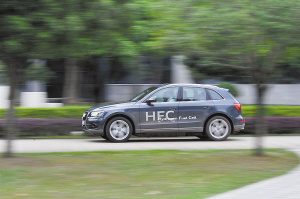 在科技日上,一款令人意想不到的氢燃料电池车——奥迪Q5 HFC(Hydrogen Fuel Cell)氢燃料电池车也出现在试乘车型队伍中。我们试乘后的感受是,与内燃机Q5相比,这款车的动力毫不逊色,声音非常安静,而且这款车排出的只有水而没有任何废气。