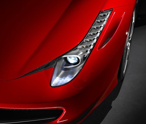 可以看到法拉利458摒弃掉了原来430的性感、唯美路线,它使用了更加狂暴和霸气的设计风格。圆润的头灯变成了怒视前方的“吊眼金睛”,正所谓画龙需点睛,458在点睛之笔上让它就脱离了360和430的设计风格。