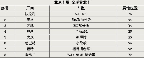 随着中国汽车市场地位的日益提高,各大厂商越来越重中国市场,因此北京车展也引来了越来越多的全球首发新车。这届北京车展将有8款新车全球首发,包含新5系Li和E级加长版,两款新车将在车展后国产上市。大众集团除了占据一个展馆之外,也带来了两款全球首发新车,分别为全球A8L和新辉腾。