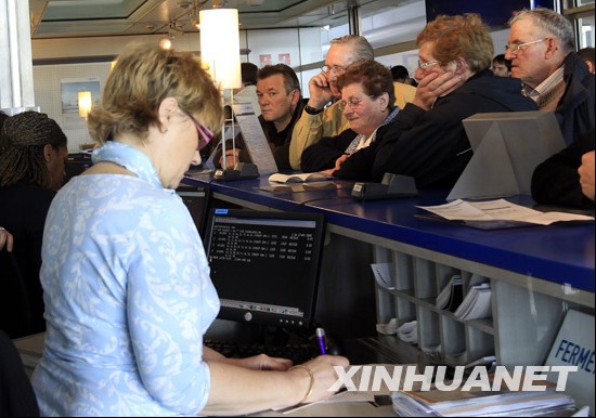 4月16日,因航班取消而滞留的旅客在法国巴黎戴高乐机场的法航柜台咨询机票信息。因冰岛火山喷发后形成大量烟尘,法国戴高乐机场从当地时间15日23时开始关闭。新华社记者张玉薇摄