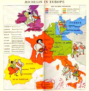 1900巴黎世博会前夕,法国米其林轮胎公司编写了“米其林指南”发放给“驾车一族”,除了准确的旅行地图,还根据第一手调查资料,详尽标记了路途上旅馆、饭店的位置和“星级”。此后米其林轮胎公司每年都例行出版一本最新“指南”。
